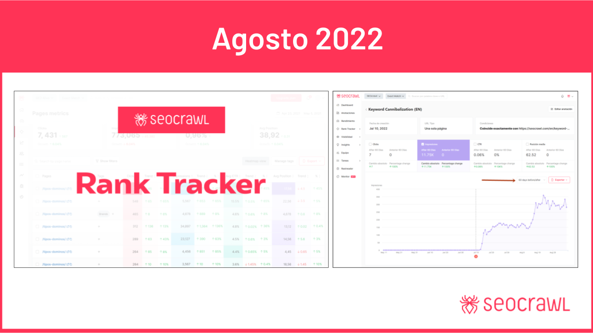 Como decíamos al inicio, últimamente habrás notado que SEOcrawl va mucho más rápido. Eso es porque cada día, hacemos mejoras en nuestras base de datos para que cada pequeño detalle vaya muy fluído y no tengas que esperar a que los datos se carguen. Este es un proceso non-stop que vamos a seguir aplicando cada mes para que tu experiencia en SEOcrawl, sea mejor cada día.