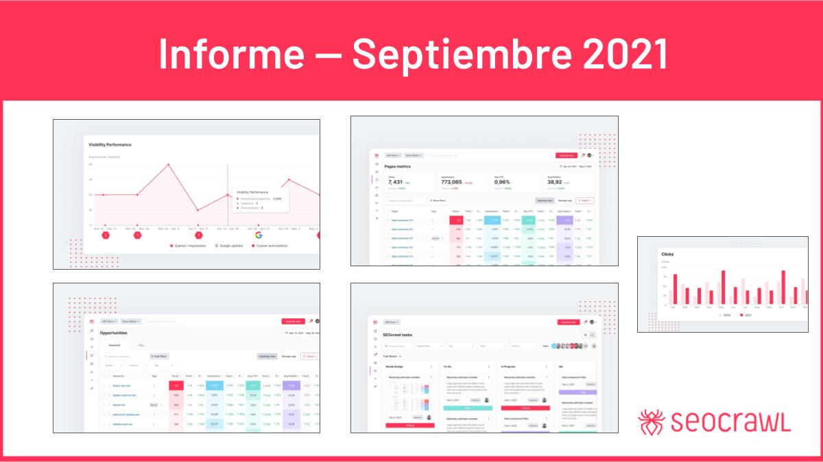 Septiembre es tradicionalmente un mes de nuevos comienzos, de cambios, de vuelta al cole... En SEOcrawl hemos trabajado muy duro para seguir implementando nuevas mejoras en nuestro software SEO y te las traemos resumidas para que no te pierdas nada. ¿Quieres verlas? ¡Vamos allá!