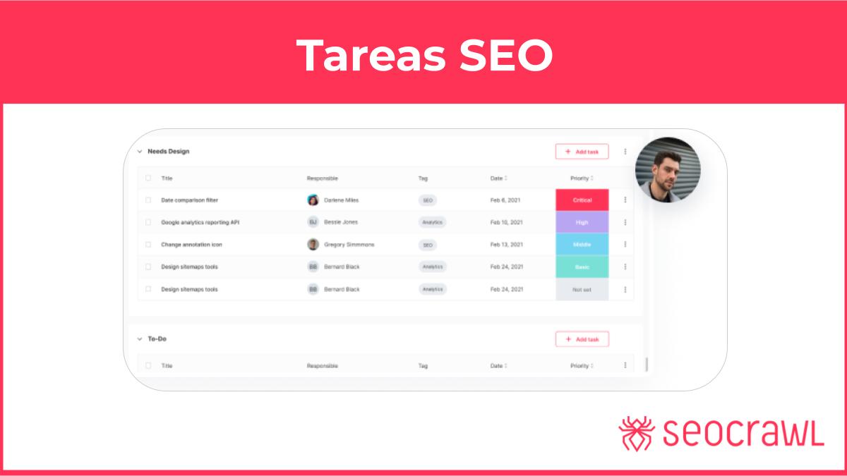SEOcrawl te permite hacer todo eso y más. Este software, que bebe directamente de los datos de Google Search Console, es una revolución en el mundo del SEO por muchos motivos, pero hoy queremos destacar uno de ellos: te permite, sin abandonar la herramienta, gestionar todas las tareas del proyecto y comunicarlas a los distintos equipos de forma eficiente, ágil y sencilla. ¿Quieres saber más?